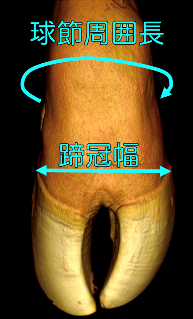 3.前肢は内蹄、後肢は外蹄の蹄背壁長が算出されます。