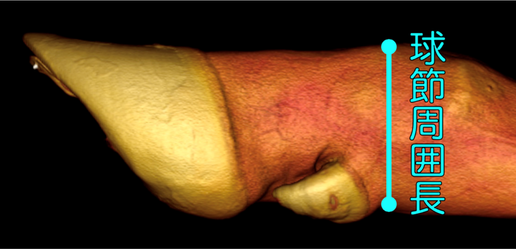 2.球節周囲長は副蹄のすぐ上側を巻き尺で測定してください(図1,2)。